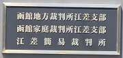 木古内方面からのバスで松城を過ぎて建石団地前で降りると目の前だ。中心街から徒歩20分程度。民事訴訟や支払督促を取り扱っていないという。我々が着いたときは、昼休みで職員不在を理由に庁舎が閉鎖されていた。午後1時に帰還した職員から同行者が聴取したところによれば、2人庁であり、来庁者は久しぶりで驚いたとのことであった。同行者は「温泉旅館矢野」の若女将を気に入ったようだ。